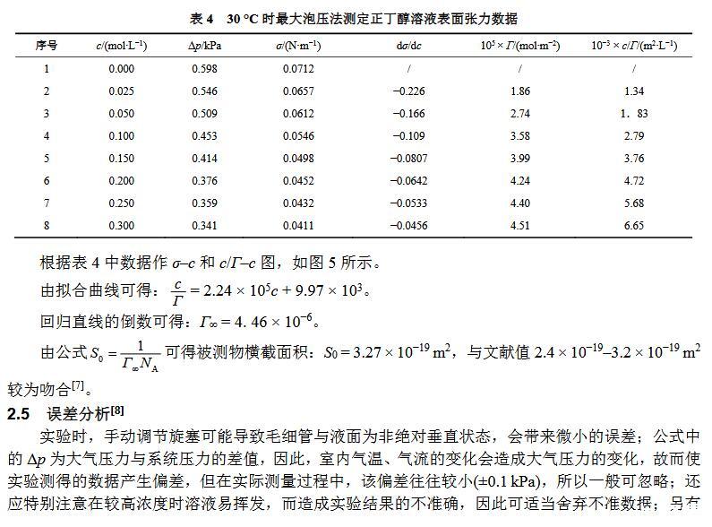 最大泡壓法測(cè)定溶液表面張力實(shí)驗(yàn)條件的優(yōu)化