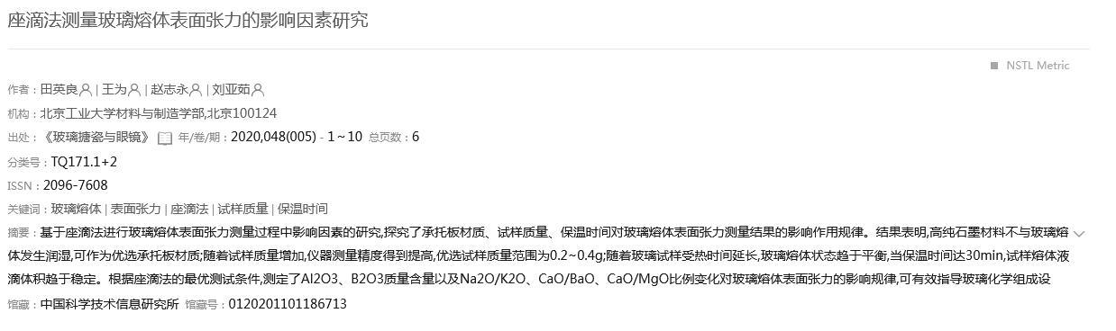 座滴法測(cè)量玻璃熔體表面張力的影響因素研究