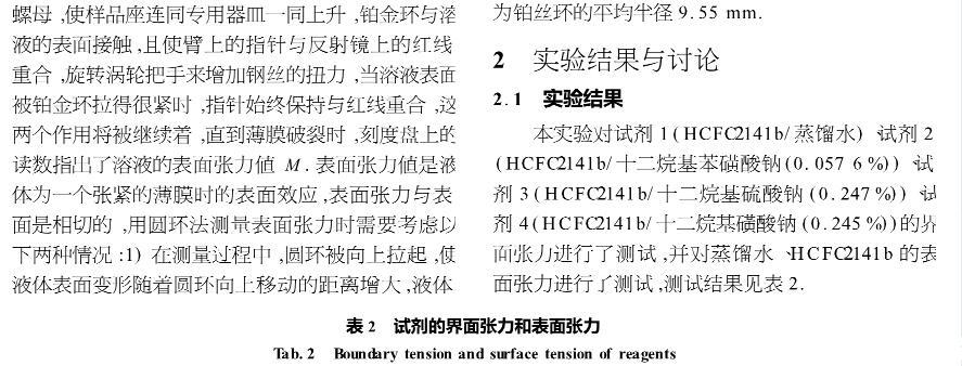【摘要】:表面活性劑能夠減小液體的表面張力以及兩相液體間的界面張力,界面張力的減小有利于促進(jìn)氣體水合物快速形成和提高水合物儲(chǔ)氣能力.為定量研究?jī)上嘁后w間界面張力對(duì)氣體水合物形成的影響,用界面張力儀實(shí)測(cè)不同溫度時(shí)蒸餾水、HCFC-141b的表面張力以及HCFC-141b/蒸餾水、HCFC-141b/十二烷基硫酸鈉溶液(0.247%)、HCFC-141b/十二烷基磺酸鈉溶液(0.245%)、HCFC-141b/十二烷基苯磺酸鈉溶液(0.057 6%)的界面張力,測(cè)試結(jié)果表明,表面活性劑對(duì)降低兩相液體間界面張力的作用十分明顯,其中十二烷基苯磺酸鈉溶液對(duì)降低界面張力最為突出,降到HCFC-141b/蒸餾水界面張力值的9%左右,為定量研究氣體水合物等優(yōu)選表面活性劑提供了科學(xué)的依據(jù)。