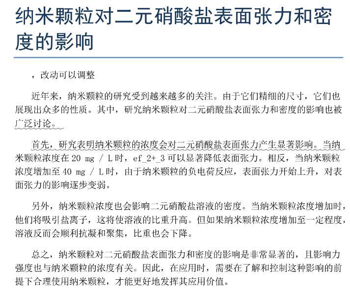 納米顆粒對(duì)二元硝酸鹽表面張力和密度的影響