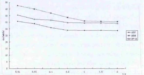 對AEO7和AEO9、OP-10在相同質量分數濃度下(0.1%)測量動態表面張力dst,分析非離子表面活性劑的分子結構對動態表面張力的影響;