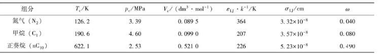 表2本文使用的純物質(zhì)狀態(tài)方程參數(shù)