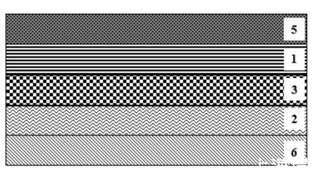 將本實(shí)施例的BOPP薄膜用于制備熱復(fù)合基材,通過熱復(fù)合功能層與共聚丙烯材料或/和聚乙烯材料復(fù)合,具體地,本實(shí)施例是與石頭紙蜂窩板5熱復(fù)合,復(fù)合后的結(jié)構(gòu)請(qǐng)參閱圖3,復(fù)合完成后,測(cè)試復(fù)合效果。復(fù)合方法包括以下步驟:首先在BOPP薄膜的可印刷表層上直接進(jìn)行耐溫油墨印刷,其中最后一道為耐溫保護(hù)光油,形成油墨層6,然后輕度熱壓使薄膜與表面達(dá)到一定溫度的石頭紙蜂窩板直接熱壓復(fù)合,熱復(fù)合工藝條件如下:溫度為130℃,封合時(shí)間為2s,熱壓壓力為8kg/cm2